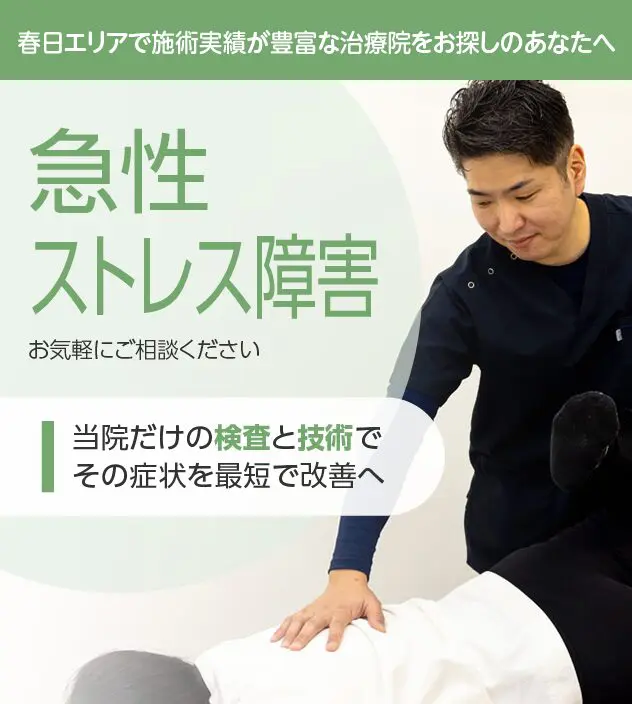 病院やほかの治療院で改善しなかったとしても諦める必要はありません。ASD(急性ストレス障害)は豊富な施術実績を誇る当院にお任せください。