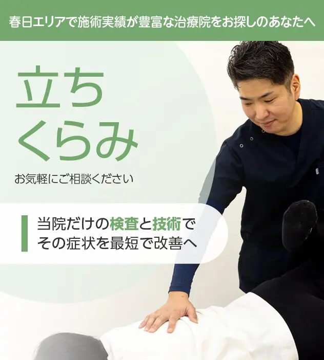 病院やほかの治療院で改善しなかったとしても諦める必要はありません。立ちくらみは豊富な施術実績を誇る当院にお任せください。