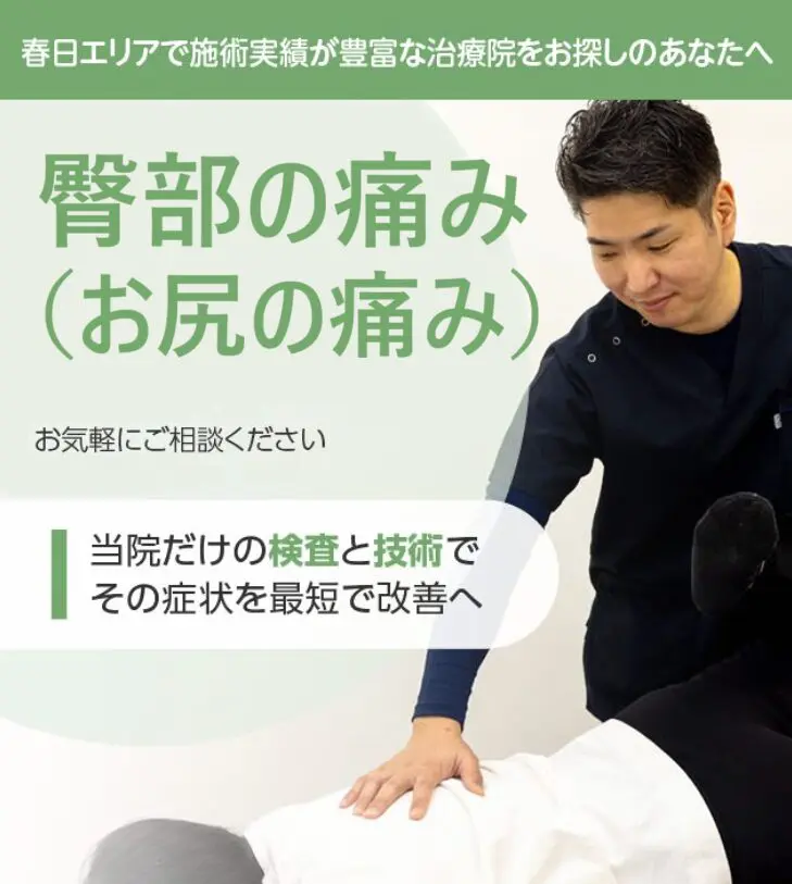 病院やほかの治療院で改善しなかったとしても諦める必要はありません。臀部の痛みは豊富な施術実績を誇る当院にお任せください。
