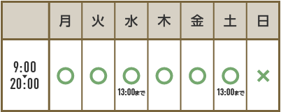 当院は完全予約制です。当日予約も可能ですが希望の日時に沿えない事もあるため、早めのご予約をお勧め致します。