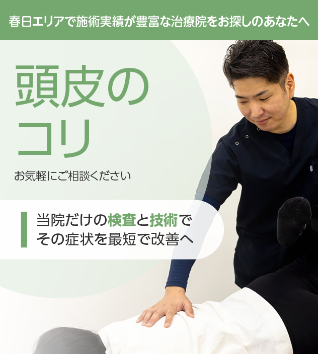 病院やほかの治療院で改善しなかったとしても諦める必要はありません。頭皮のコリは豊富な施術実績を誇る当院にお任せください。