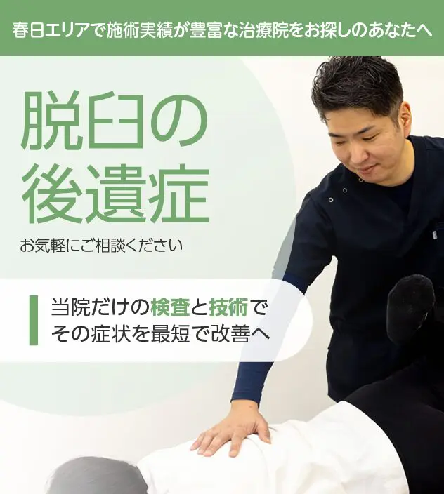病院やほかの治療院で改善しなかったとしても諦める必要はありません。脱臼の後遺症は豊富な施術実績を誇る当院にお任せください。