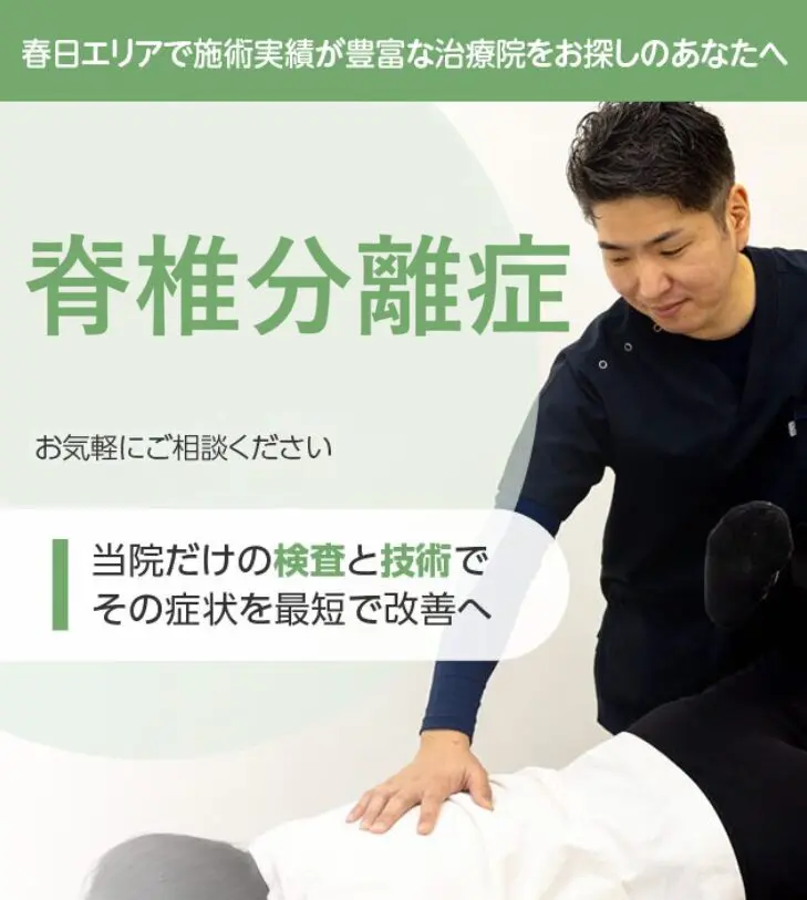 病院やほかの治療院で改善しなかったとしても諦める必要はありません。脊椎分離症は豊富な施術実績を誇る当院にお任せください。