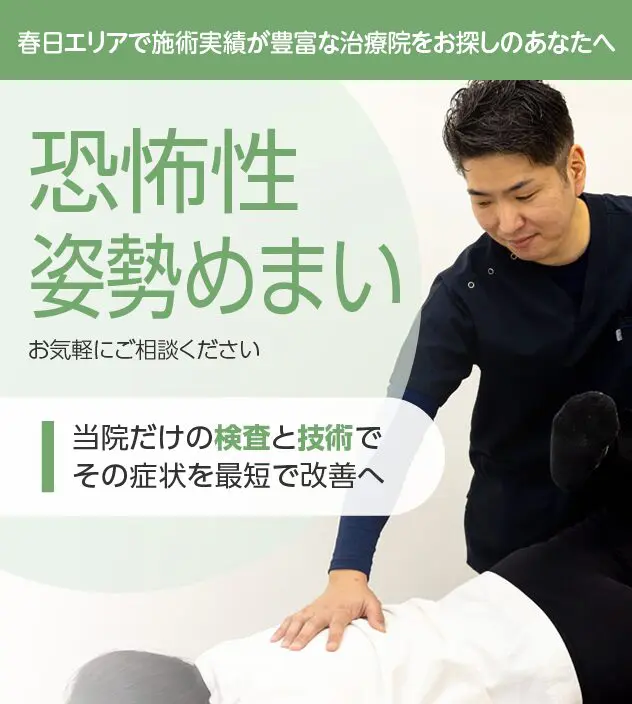 病院やほかの治療院で改善しなかったとしても諦める必要はありません。恐怖性姿勢めまいは豊富な施術実績を誇る当院にお任せください。